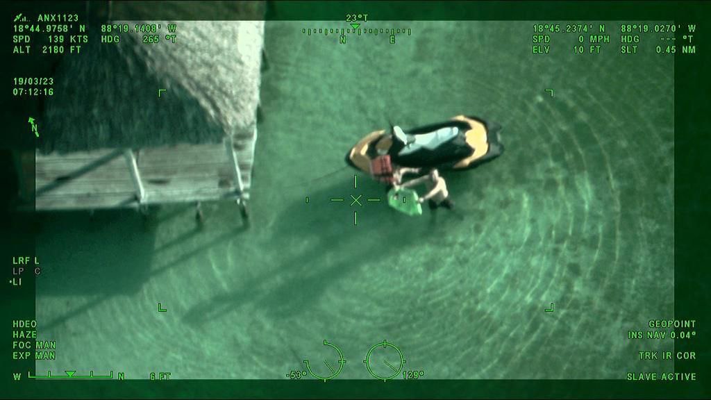 La aeronave sobrevolaba a 2 mil 180 pies de altura, cuando localizó una unidad tipo moto acuática que quedó a la deriva y que sus tripulantes hacían señas de auxilio, por lo que enviaron apoyo de las unidades acuáticas para que procedan con el rescate.