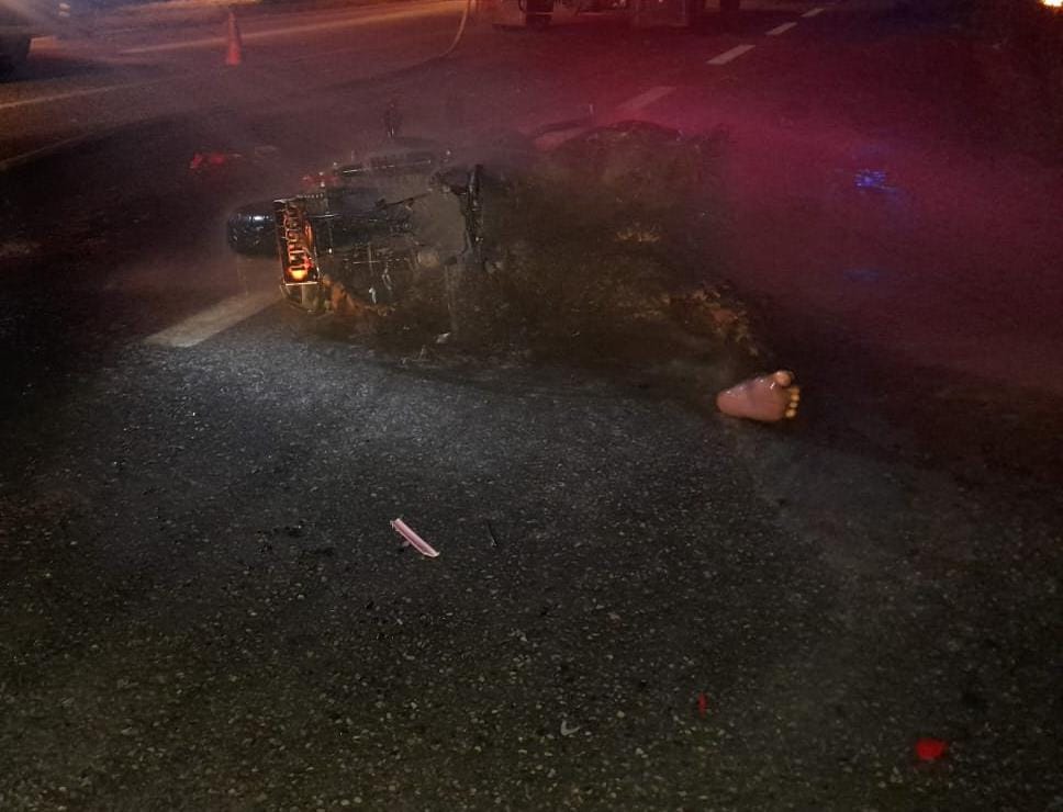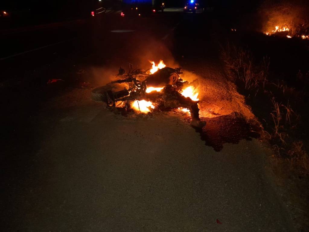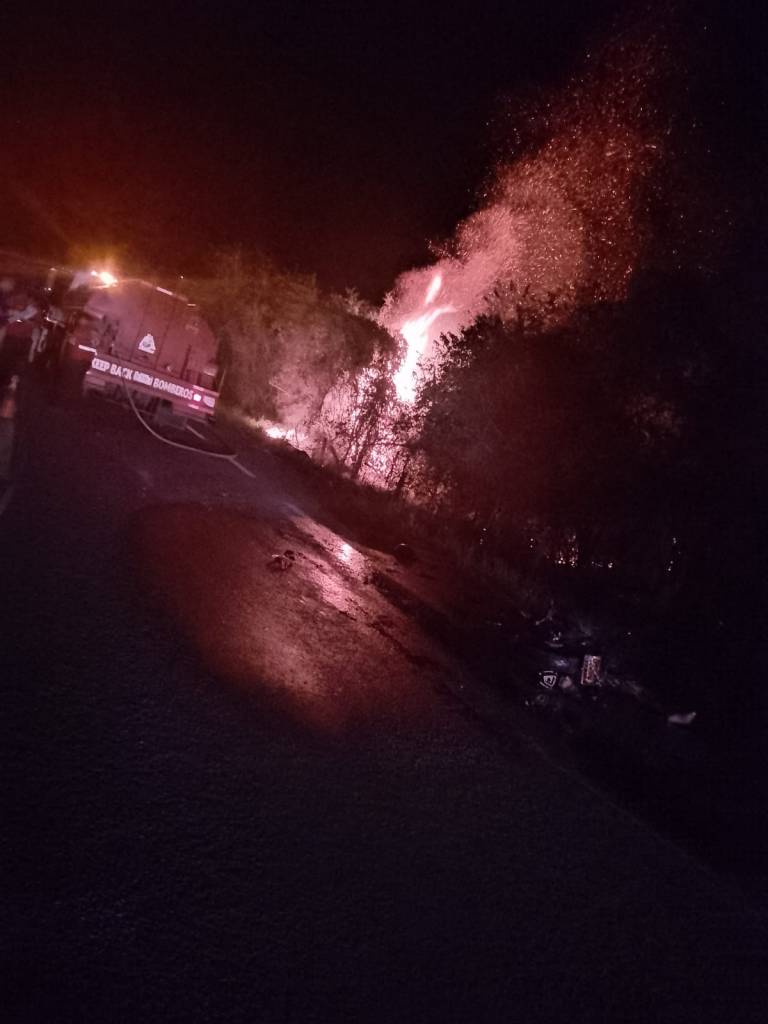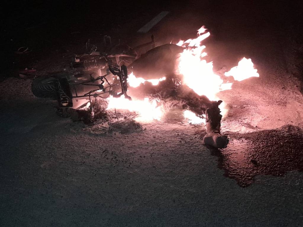 El percance provocó que la gasolina empezara a derramarse del tanque de combustible que en cuestión de segundos se incendió debido a un corto circuito en el cableado de la unidad, por lo que uno de los motociclistas que había quedado debajo de la unidad murió calcinado en el lugar, mientras su acompañante que yacía a escasos metros también falleció debido a sufrió diversas lesiones y fracturas corporales.