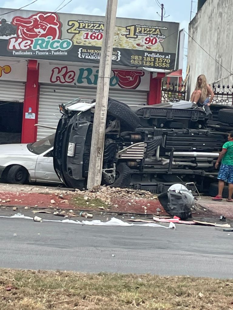 La Influencer Queen Buenrostro se vio involucrada en un accidente en Chetumal, la unidad en la que viajaba como pasajera choco con dos autos y luego volcó en conocida avenida