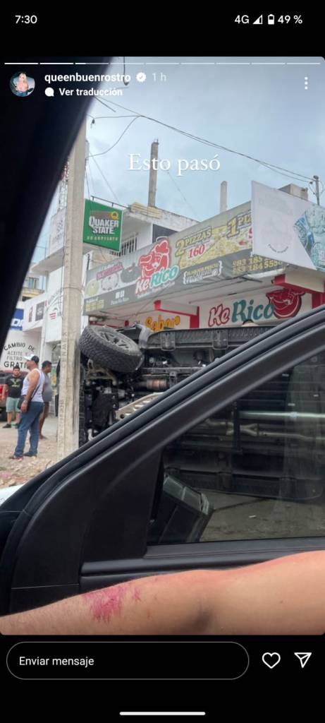 La influencer Queen Buen rostro tendrá una nueva experiencia que contar en sus historias, luego de que sufrió un aparatoso accidente en Chetumal, cuando el conductor de la camioneta en la que viajaba perdió el control sobre la avenida Insurgentes y choco con dos autos para luego volcar, dejando a 9 personas lesionadas y daños por más de 2 millones y medio de pesos, que resultaron en perdida total de los vehículos.