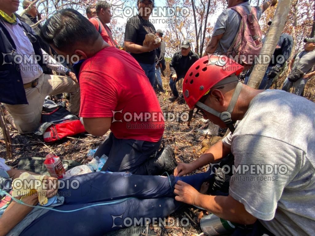 Aunque presentó un cuadro de deshidratación, se le puso suero y finalmente fue trasladada por el personal del heroico cuerpo de bomberos con una camilla echa de manera manual, para que así la puedan llevar hasta donde los esperaba la ambulancia de la Unidad Médica de Bomberos, para su traslado de manera terrestre hasta el hospital general de Chetumal.