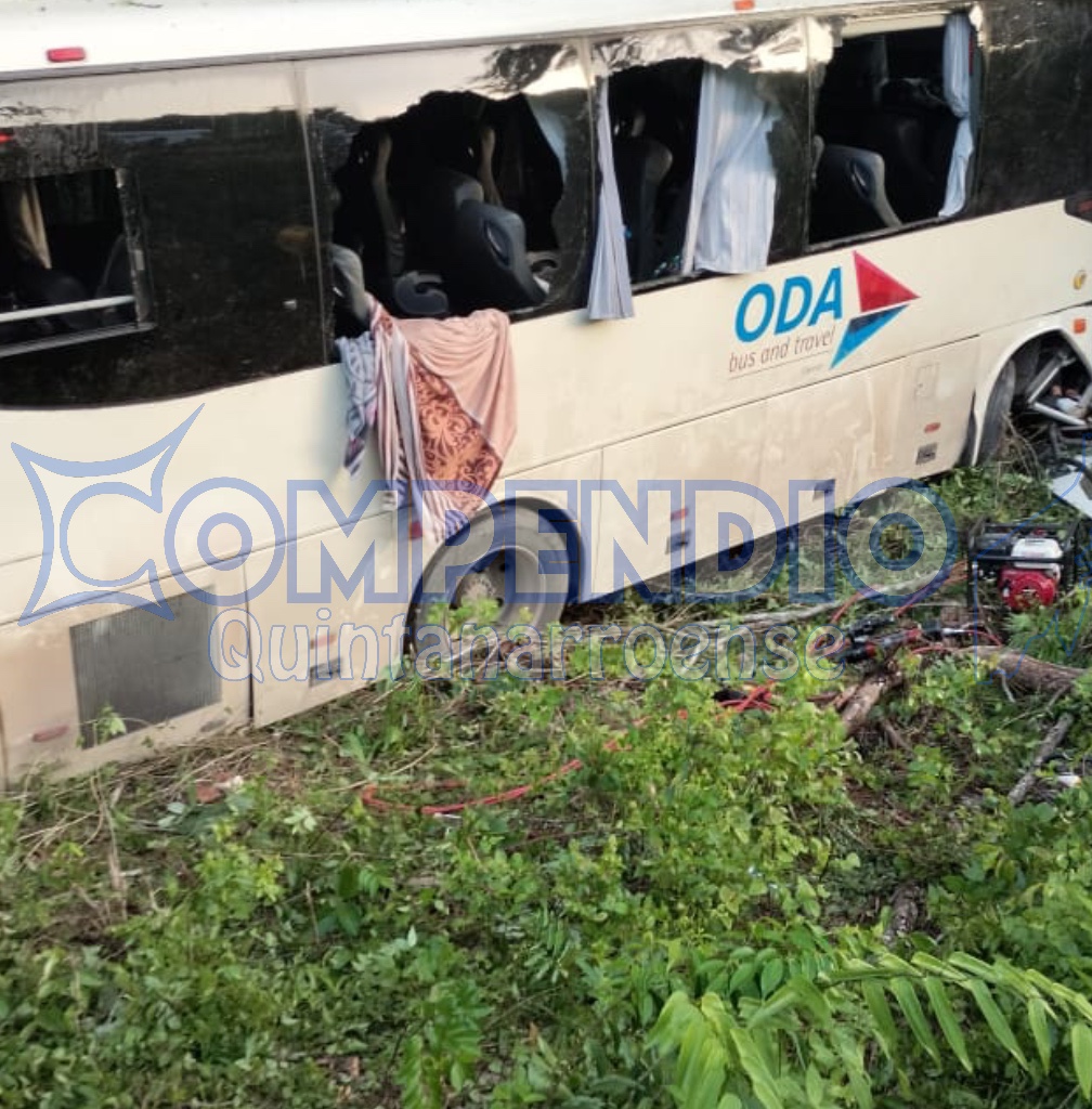 Una tragedia vial en la que un autobús de pasajeros de la línea ODA se salió de la carretera federal 307, en el tramo Bacalar – Cancún, y posteriormente colisionó violentamente con un árbol se registró la mañana de este domingo 23 de julio. El conductor perdió el control del autobús y provocó el accidente que dejó varios lesionados, cinco de ellos en estado crítico, y la triste pérdida de una niña de tan solo 13 años.