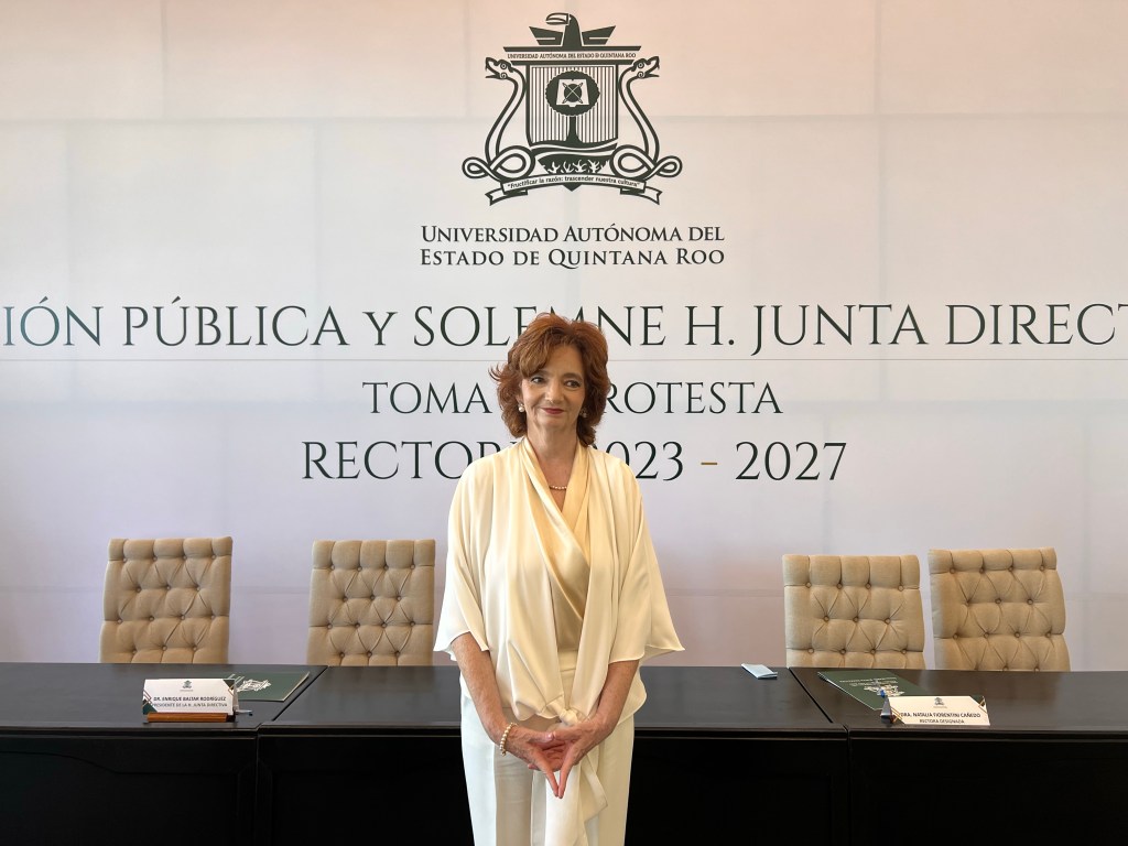 Hay que recordar que Natalia Fiorentini, rindió protesta el pasado 16 de agosto y por un periodo de 4 años y hasta el 16 de agosto del 2027, ocupará la rectoría de la Universidad Autónoma de Quintana Roo.