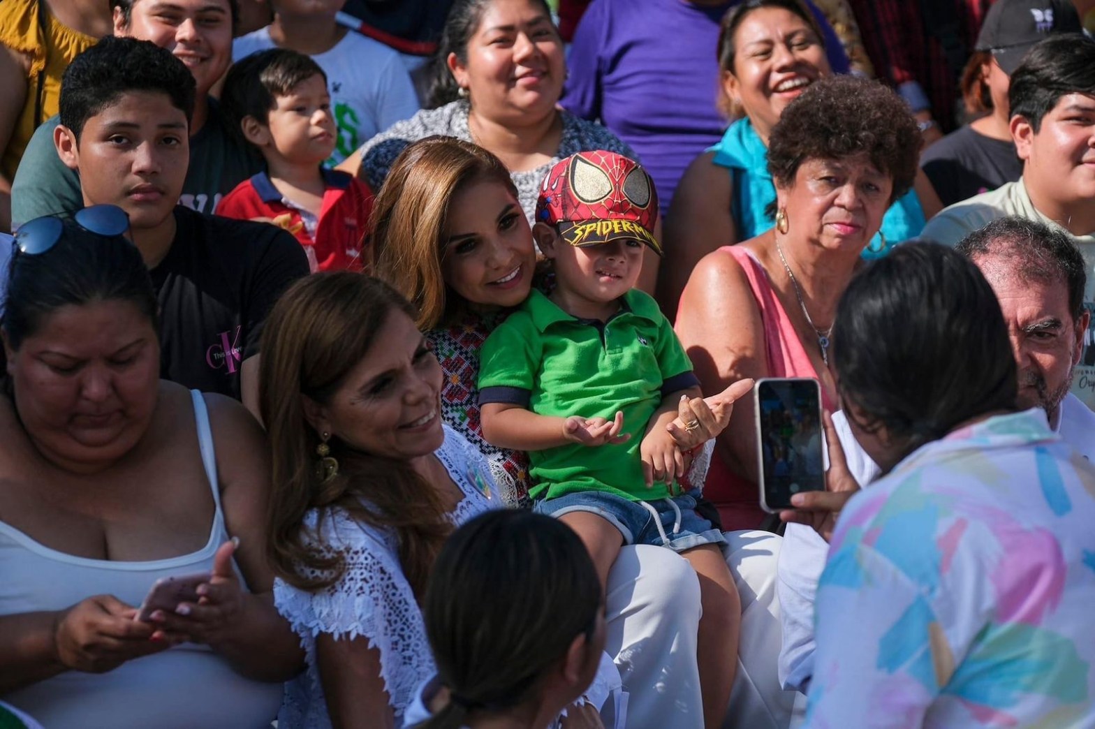 Chetumal 16 septiembre.- La gobernadora de Quintana Roo, Mara Lezama, desafió las normas protocolarias en un emotivo inicio del desfile conmemorativo al 213 aniversario de la Independencia de México, con un gesto que sorprendió a todos los presentes, la mandataria no se limitó al palacio de gobierno, sino que descendió de su posición oficial para unirse a los asistentes que estaban en las gradas.