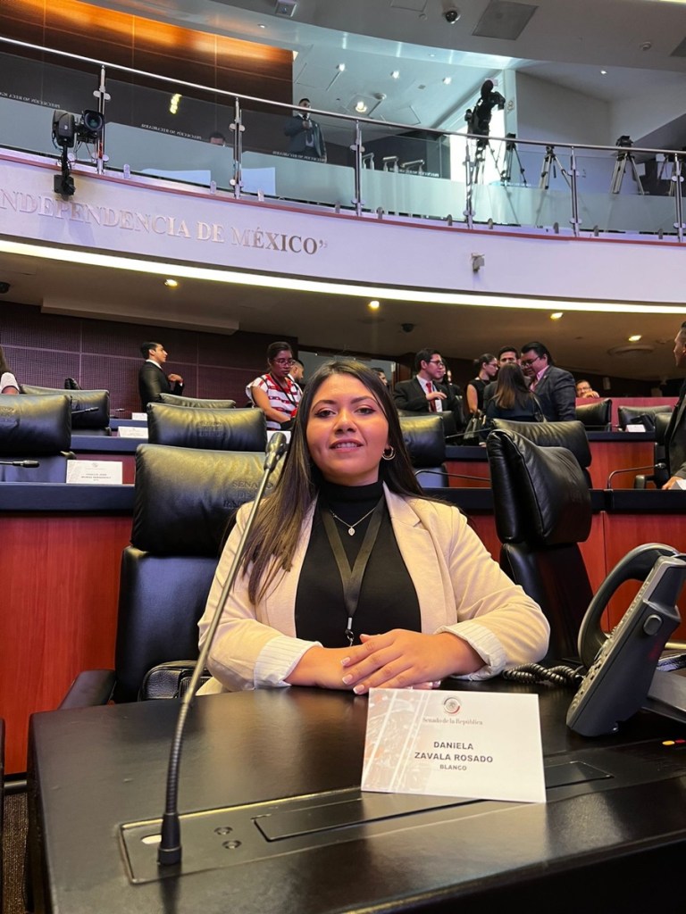 Daniela Zavala fue seleccionada mediante un jurado calificado del senado de la república por su propuesta de iniciativa para “la protección de las jóvenes pasantes que realizan su servicio social en comunidades viviendo actos de violencia, discriminación e incluso abuso sexual sin una ley que las proteja.