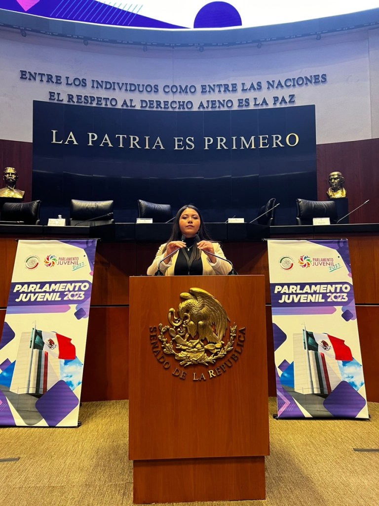Chetumal, Quintana Roo – Daniela Zavala Rosado, la joven Chetumaleña, participa en el Parlamento Juvenil 2023, organizado por el Senado de la República en la Ciudad de México.