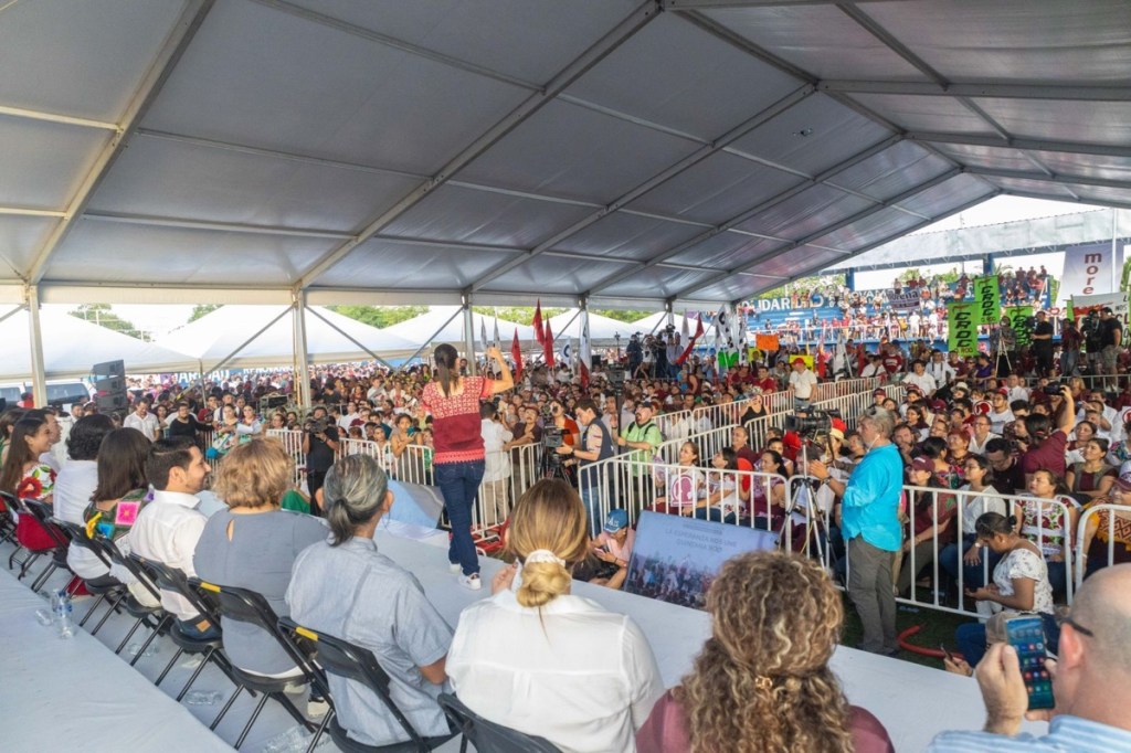 “Estamos en un momento trascendental de la historia. Nos está tocando vivir muy especial. Le vamos a decir a nuestros hijos, a nuestros nietos, a nuestros bisnietos, que logramos que continuara la transformación iniciada por el presidente Andrés Manuel López Obrador, el mejor presidente que ha tenido México en la historia moderna”, exclamó Sheinbaum a los asistentes.