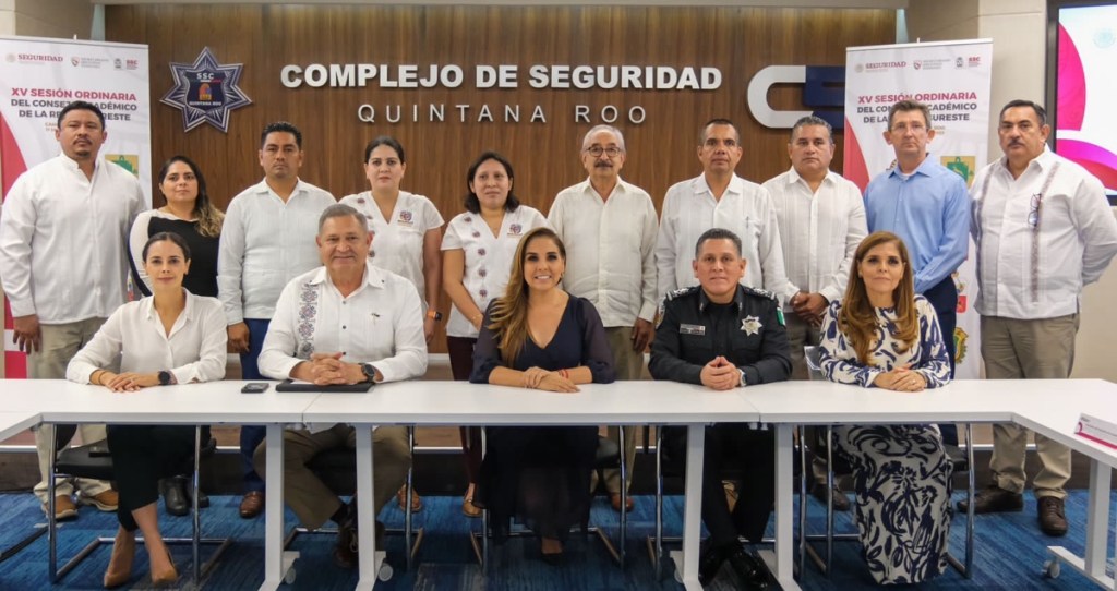 Cancún.- Al inaugurar la XV Sesión Ordinaria del Consejo Académico de Formación Policial de la Región Sureste, que reúne a directivos y funcionarios de las instituciones de formación policial de Campeche, Chiapas, Oaxaca, Tabasco, Veracruz, Yucatán y Quintana Roo, la gobernadora Mara Lezama Espinosa destacó las acciones que se realizan en la entidad para la construcción de la paz.