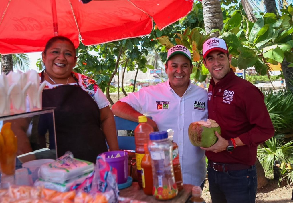 En su recorrido de este lunes en el que estuvo acompañado por Gino Segura, candidato al Senado por la coalición Sigamos Haciendo Historia, Juan Carrillo habló con los comerciantes de la zona turística y la zona urbana de Playa del Carmen, a quienes les que aseguró que buscará crear el marco legal que castigue con penas severas a quienes quiten el pan de la mesa de la gente trabajadora.