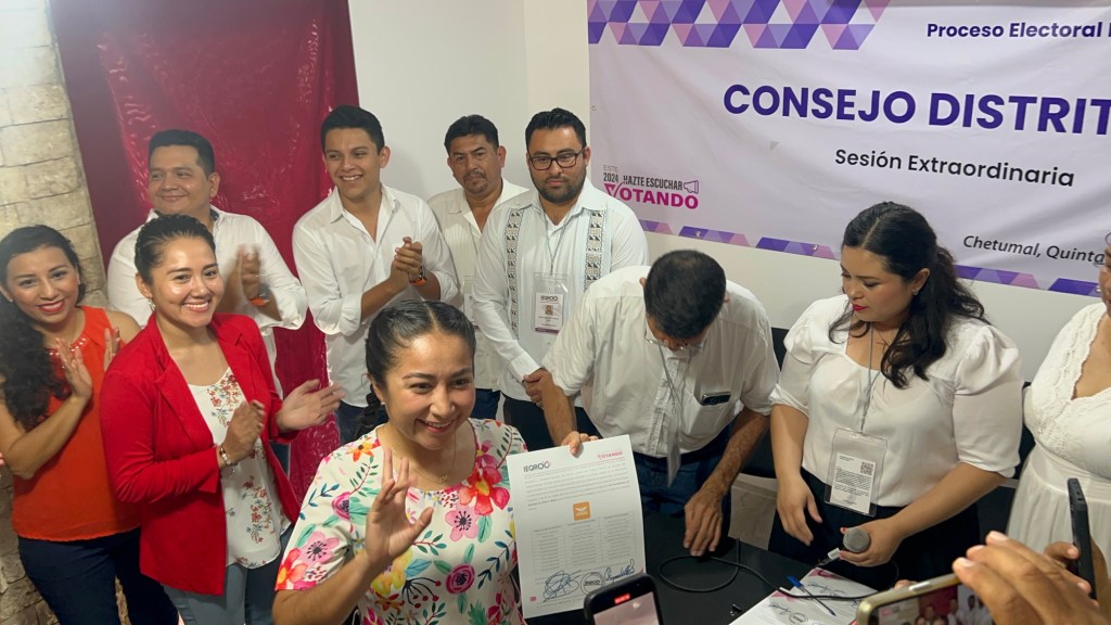 El consejo distrital 14 del Instituto Electoral de Quintana Roo otorgó la constancia oficial a Lidia Rojas, quien se postula como candidata para la presidencia municipal de Othón P. Blanco bajo el estandarte de Movimiento Ciudadano.