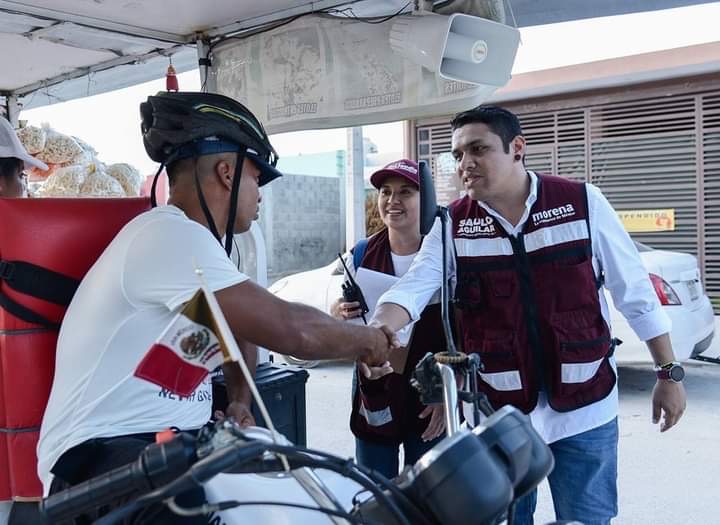 Chetumal, a 19 de Abril de 2024.- «No existe una varita mágica, pero si la voluntad de mi parte de cumplir cada uno de los compromisos» adquiridos con los habitantes del Fraccionamiento Flamingos IV etapa, el cual recorrió Saulo Aguilar Bernés, candidato a diputado por el Distrito XV de la alianza «Sigamos Haciendo Historia» de Morena-PVE-PT.