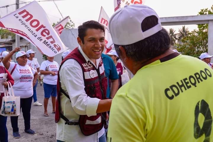 CHETUMAL.- Sin bajar el ritmo de su campaña y manteniendo la cercanía y el compromiso con los ciudadanos a quienes les presenta sus propuestas legislativas, Saulo Aguilar Bernés, candidato a diputado por el Distrito XV por la coalición “Sigamos haciendo historia” recorrió la colonia Adolfo López Mateos y la Unidad Antorchistas donde el voto está decidido con el candidato del pueblo y el “Plan C”, cinco de cinco para los abanderados de Morena-PVE-PT.