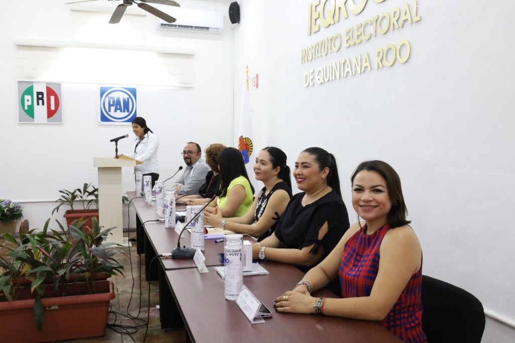 Asimismo, se contó con la presencia de la Consejera Elizabeth Arredondo Gorocica; de la Secretaria Ejecutiva Deydre Carolina Anguiano Villanueva, del Titular del Órgano Interno de Control, José Gabriel Polanco Bueno; del representante de la Dirección General del Colegio de Bachilleres de Quintana Roo, Carlos Streicher Jonguitud; de alumnos del Colegio de Bachilleres 2, así como de representantes de partidos políticos.