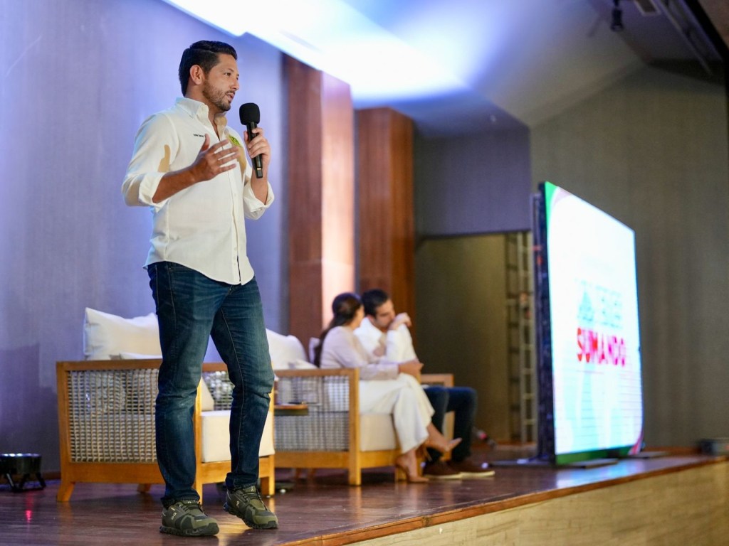 Cancún, 17 de mayo de 2024.– El líder estatal del Partido Verde Ecologista de México (PVEM), Renán Sánchez Tajonar, asistió al evento “Mujeres Sumando”, donde, ante empresarias y profesionistas quintanarroenses, destacó que la participación de mujeres es clave en el desarrollo y transformación del Estado y del país.