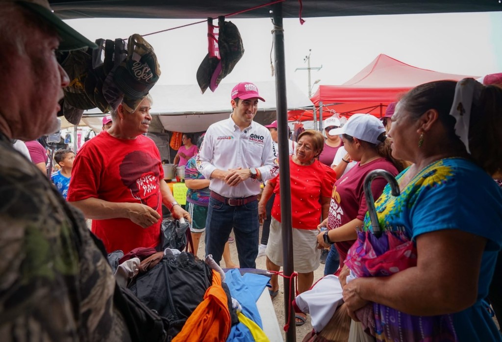 Othón P. Blanco, Quintana Roo.- Durante un recorrido por la ciudad capital, el candidato al Senado de la República, GINO Segura caminó por los pasillos del tianguis de la colonia Forjadores, donde platicó con las y los vendedores de ropa, juguetes y artículos de segunda mano.