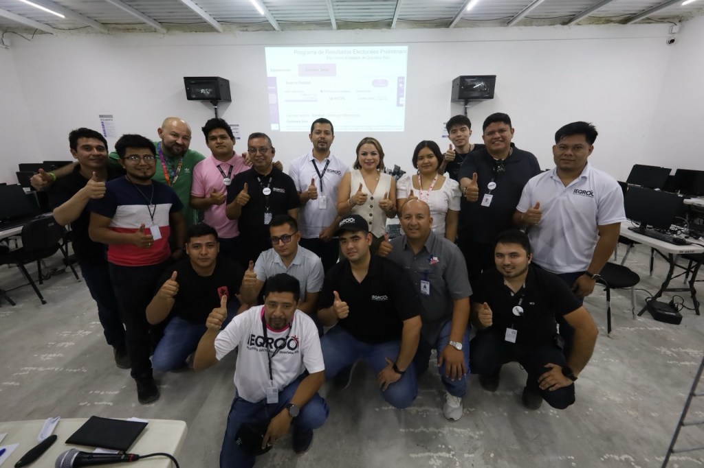 La Consejera Presidenta del IEQROO, Rubí Pacheco Pérez, hizo un reconocimiento general a todo el funcionariado que integra el Instituto Electoral de Quintana Roo, así como, a la Unidad Técnica de Informática y Estadística por la operación del PREP; reunidos en la sala de sesiones, estuvieron presentes las consejeras Elizabeth Arredondo Goricica, Claudia Ávila Graham, Salomé Medina Montaño, la secretaria ejecutiva Carolina Anguiano Villanueva, y los integrantes de la Comisión Temporal encargada de dar seguimiento a los informes de los trabajos de implementación y operación del PREP que preside la Consejera Maisie Lorena Contreras Briceño e integrantes, los consejeros Adrián Amílcar Sauri Manzanilla, Juan César Hernández Cruz y el Secretario Técnico, Isaías Contreras Benítez.