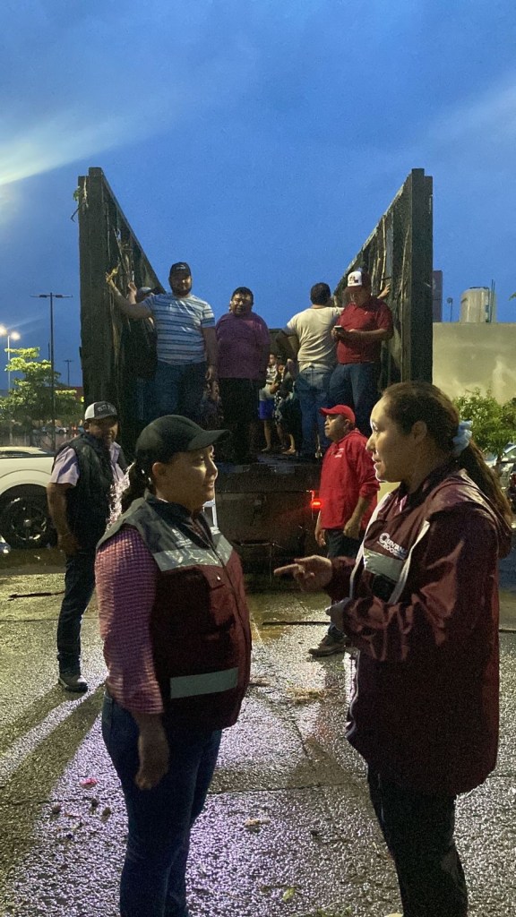Fuerzas de seguridad de los tres órdenes de gobierno continúan apoyando en el traslado de familias chetumaleñas hacia refugios habilitados y acercándolos a sus hogares.
