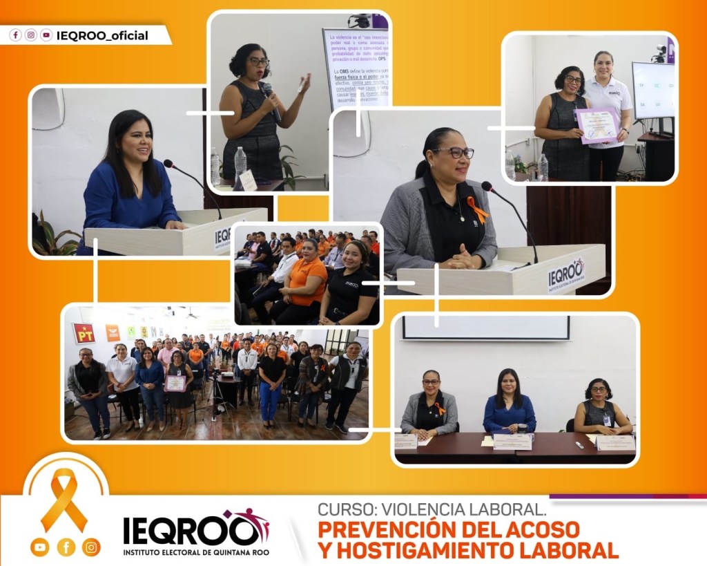 Chetumal, Q. Roo; a 25 de junio. – El Instituto Electoral de Quintana Roo (IEQROO) a través del Comité de Igualdad Laboral y No Discriminación, que preside la Consejera María Salomé Medina Montaño, organizó el curso: “Violencia laboral. Prevención del acoso y hostigamiento laboral”, con el objetivo de prevenir y erradicar la violencia al interior del Instituto, al considerar que todas y todos, en algún momento pudimos ser víctimas o ejercimos este tipo de violencia. Evento realizado en la sala de sesiones del Instituto.