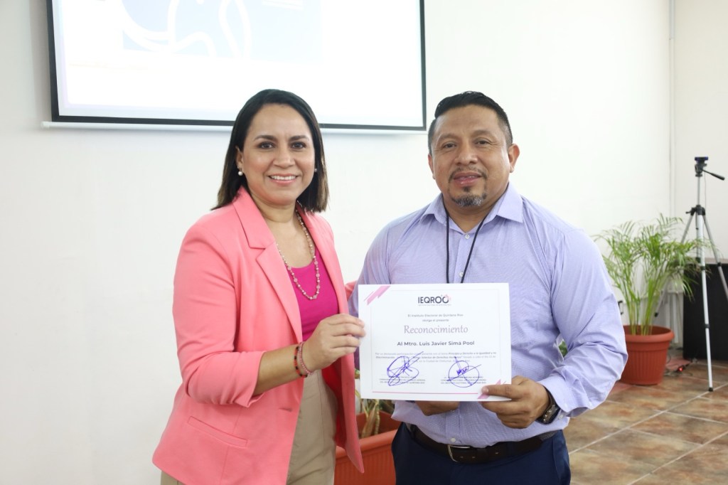 Cabe señalar que, al finalizar el primer módulo, la Consejera Elizabeth Arredondo Gorocica, otorgó un reconocimiento al ponente, Luis Javier Simá Pool.