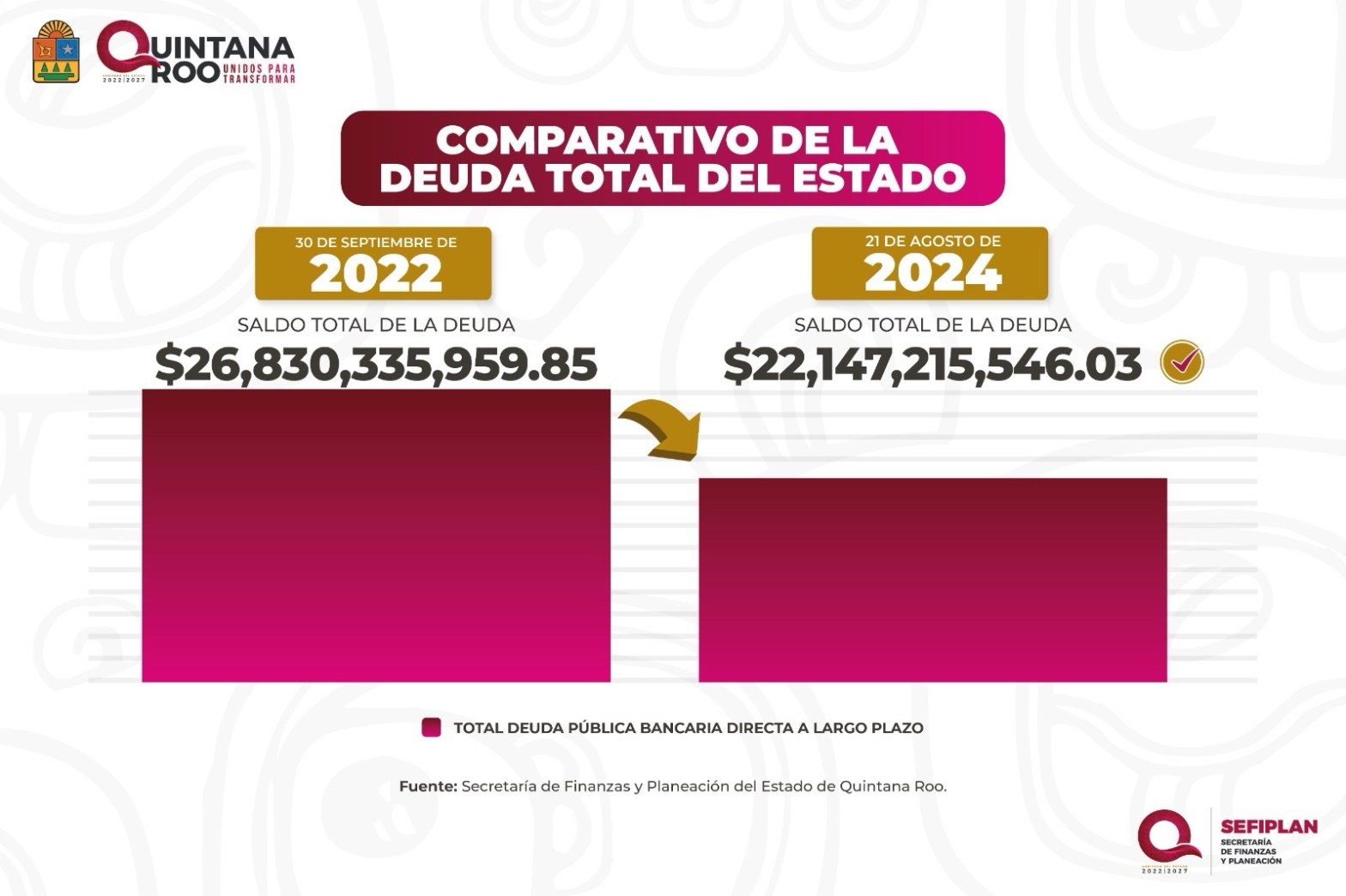 Disminuye la deuda total de Quintana Roo: SEFIPLAN