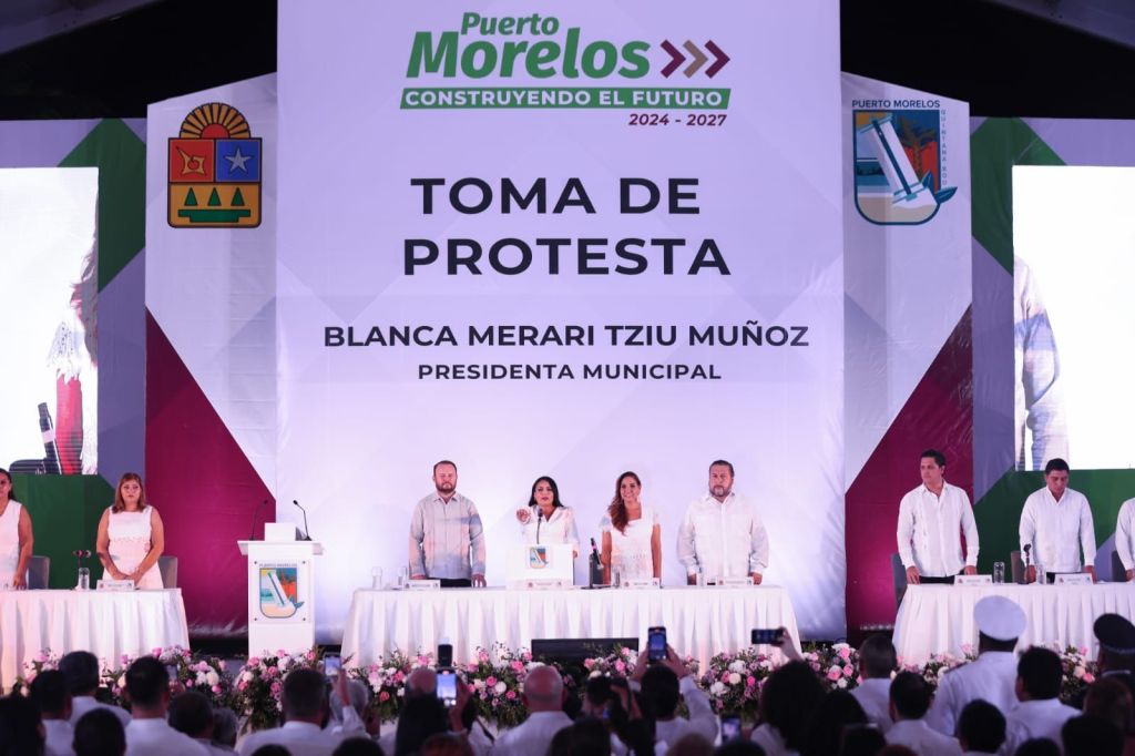 Puerto Morelos, Quintana Roo, 30 de septiembre de 2024.- Puerto Morelos está listo para dar el siguiente paso y contar una nueva historia, para seguir transformándose con una agenda clara para los siguientes tres años y garantizar bienestar a las próximas generaciones, señaló Blanca Merari Tziu Muñoz durante la primera Sesión Pública y Solemne de Cabildo, en la que rindió protesta como Presidenta Municipal para el periodo constitucional 2024-2027.