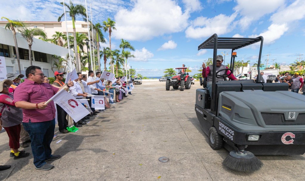 Cozumel.- El presidente municipal José Luis Chacón dio el banderazo de salida al inicio del “Programa Emergente de Servicios Públicos y Urbanos” para que las familias cozumeleñas cuenten con espacios limpios y accesibles.