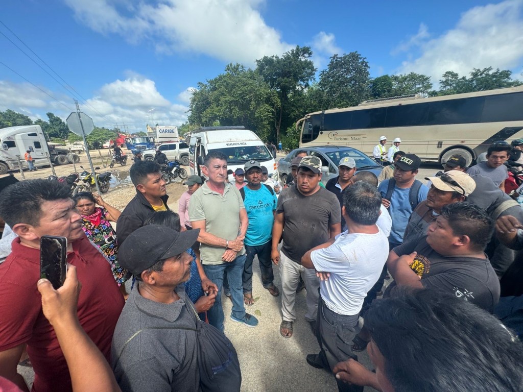 Esta mañana, habitantes de Maya Balam y comunidades cercanas bloquearon la carretera que conecta Bacalar con la localidad de Limones, a la altura del centro Xtomoc.