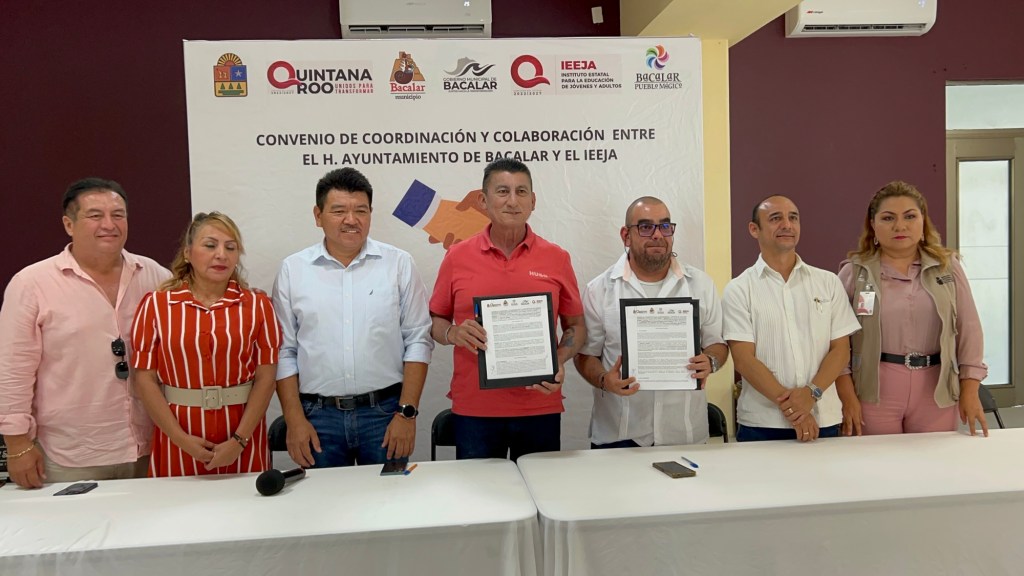 En Bacalar el presidente municipal José Alfredo Contreras Mendez, continúa impulsando la educación y profesionalización del personal, por tal motivo se llevo acabo la firma del convenio entre el Ayuntamiento de Bacalar y el Instituto Estatal de Educación para Jóvenes y Adultos (IEEJA).