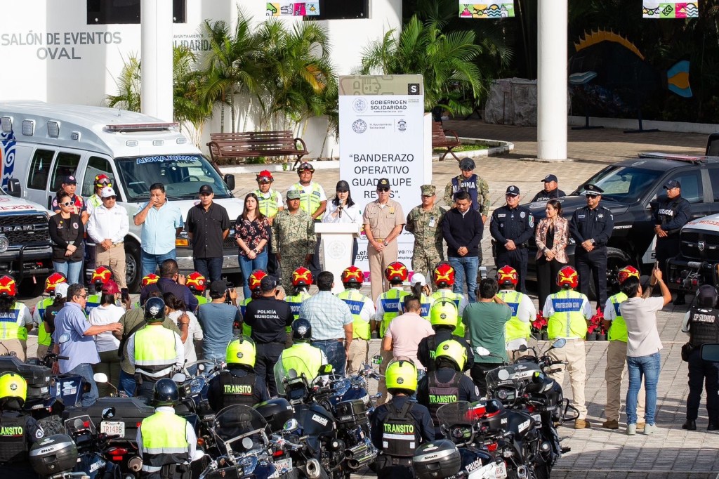 Playa del Carmen, Quintana Roo, 9 de diciembre de 2024.— La presidenta municipal Estefanía Mercado dio el banderazo de inicio del operativo Guadalupe-Reyes, que concluirá el próximo 7 de enero, con la participación de la fuerza policial de Solidaridad, emergencias, Guardia Nacional, Armada de México, Secretaría de la Defensa Nacional y la Policía Estatal.