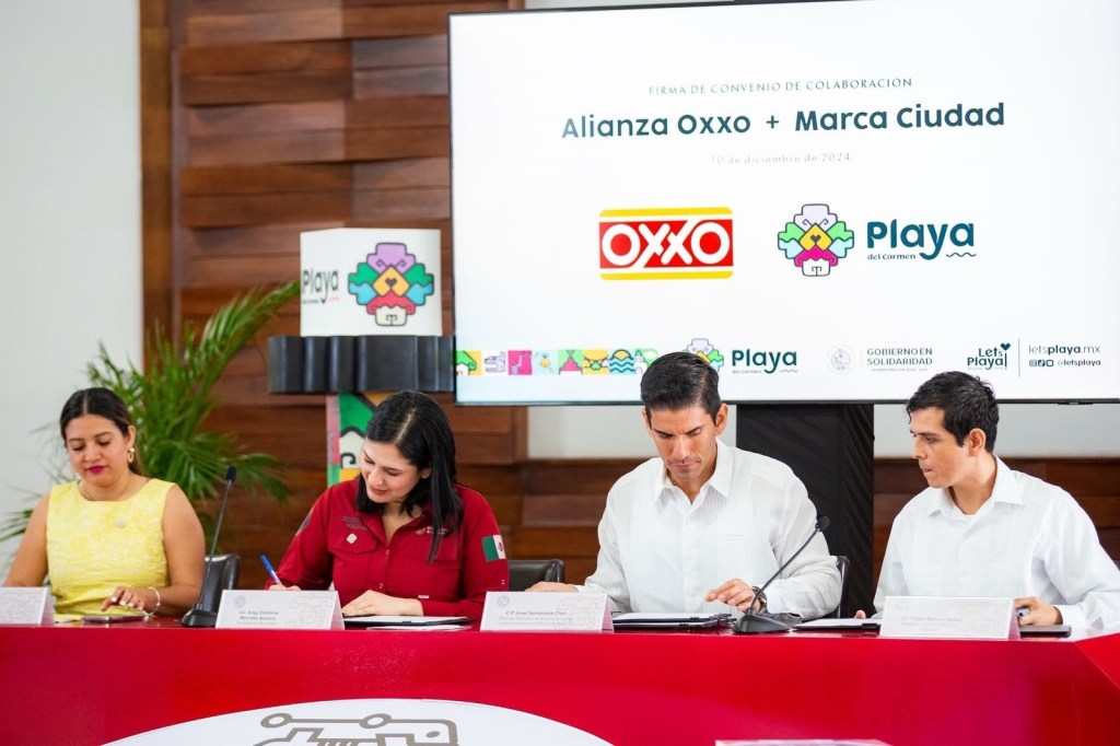Playa del Carmen, Quintana Roo, 11 de diciembre de 2024.— La presidenta municipal Estefanía Mercado suscribió un convenio de colaboración con el Grupo de Fomento Económico Mexicano (Oxxo), a fin de promocionar la marca Ciudad Playa del Carmen como un destino turístico de clase mundial.