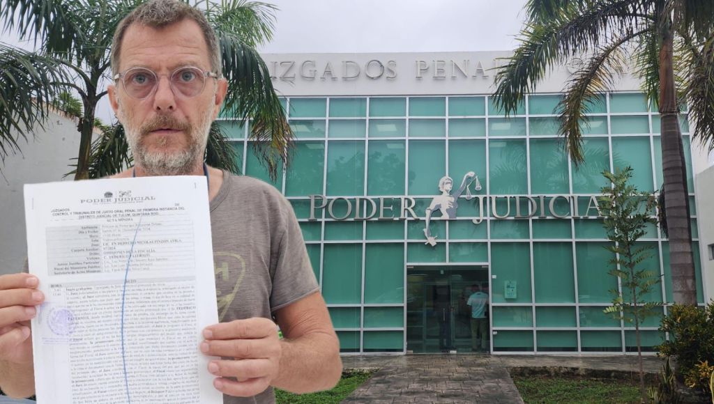 El fue sacado violentamente de su propiedad por un grupo de policías de Cancún y actuarios sin identificación, acompañados por individuos que se encargaron de cercar en horas la propiedad invadida ubicada en el kilómetro 4.5 de la carretera Tulum-Boca Paila, todo sin presentar documentos legales.