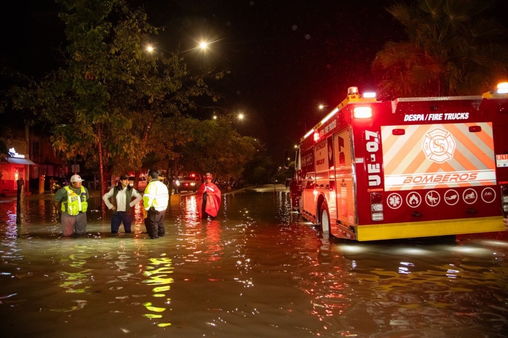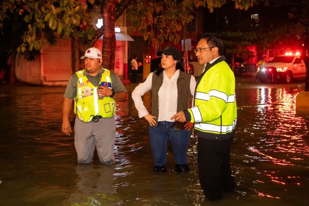 Playa del Carmen, Quintana Roo, 26 de diciembre de 2024.- La presidenta municipal de Solidaridad, Estefanía Mercado, recorrió puntos críticos de la ciudad en los que se registraron encharcamientos severos a causa de la intensa lluvia que se registró la tarde noche de este jueves.
