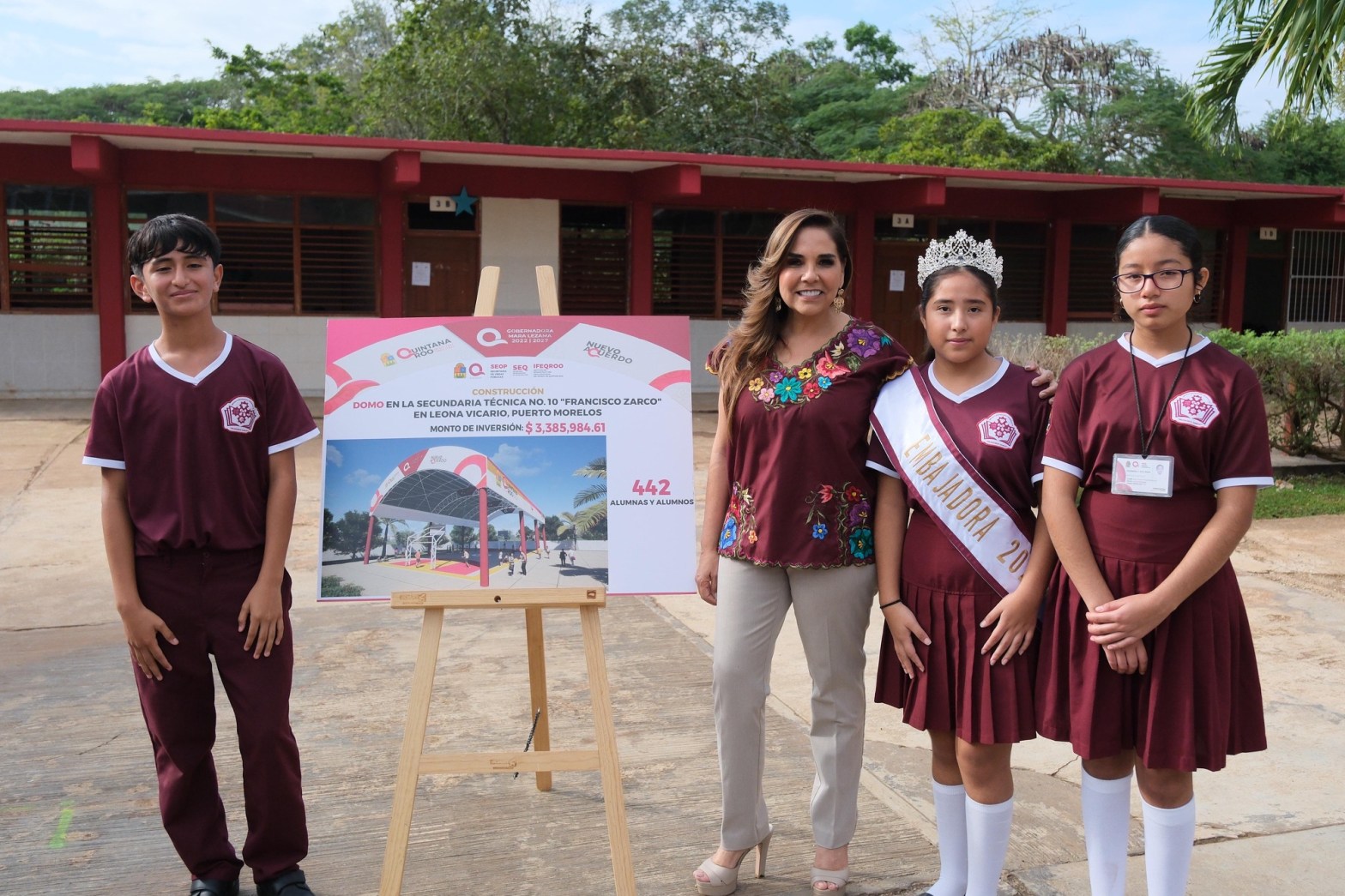 Anuncia Mara Lezama construcción de domo en Secundaria Técnica 10 Francisco Zarco en Leona Vicario