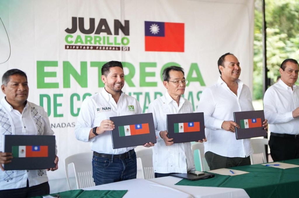 El dirigente del Verde en Quintana Roo, acompañó al diputado federal Juan Carrillo a la entrega del equipo de cómputo donado por Taiwán a la Secundaria General José Antonio Tzuc Esparza de Puerto Aventuras