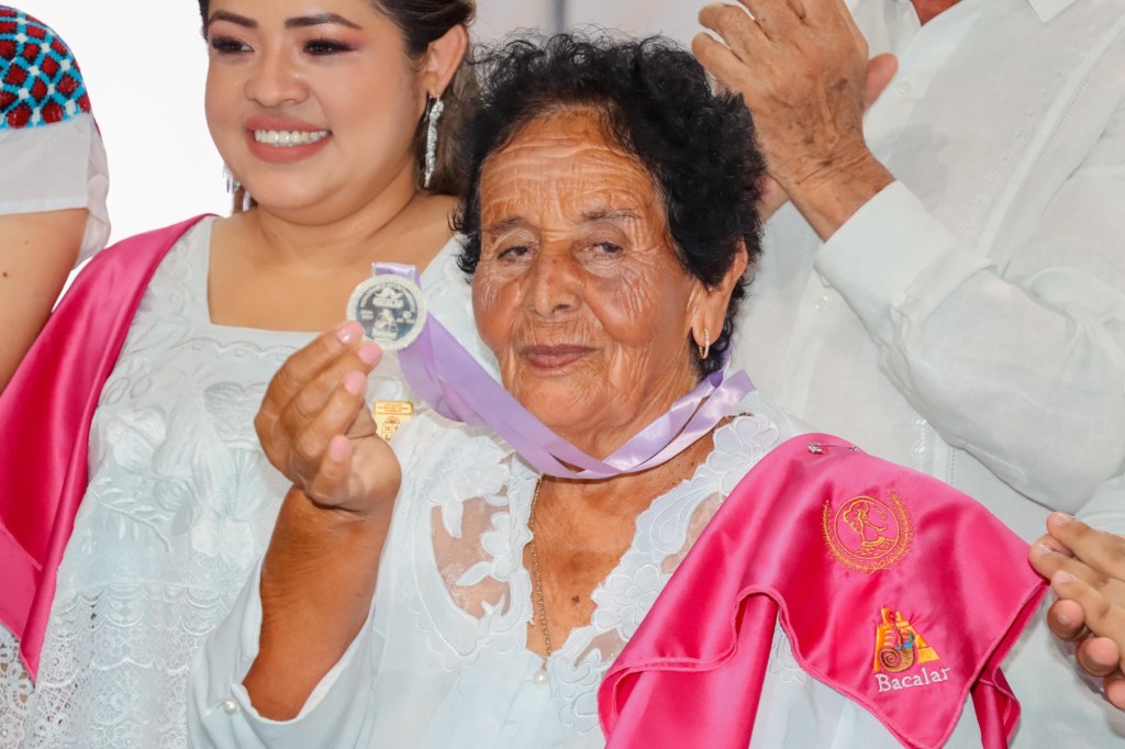 BACALAR.- La ciudadana Raquel Bautista Ortiz, de la comunidad de Lázaro Cárdenas, se convirtió en la primera mujer bacalarense en recibir la Medalla al Mérito de la Mujer “Rossina Castillo Rodríguez”, por su destacada labor siempre en beneficio de su comunidad y de todo el municipio.