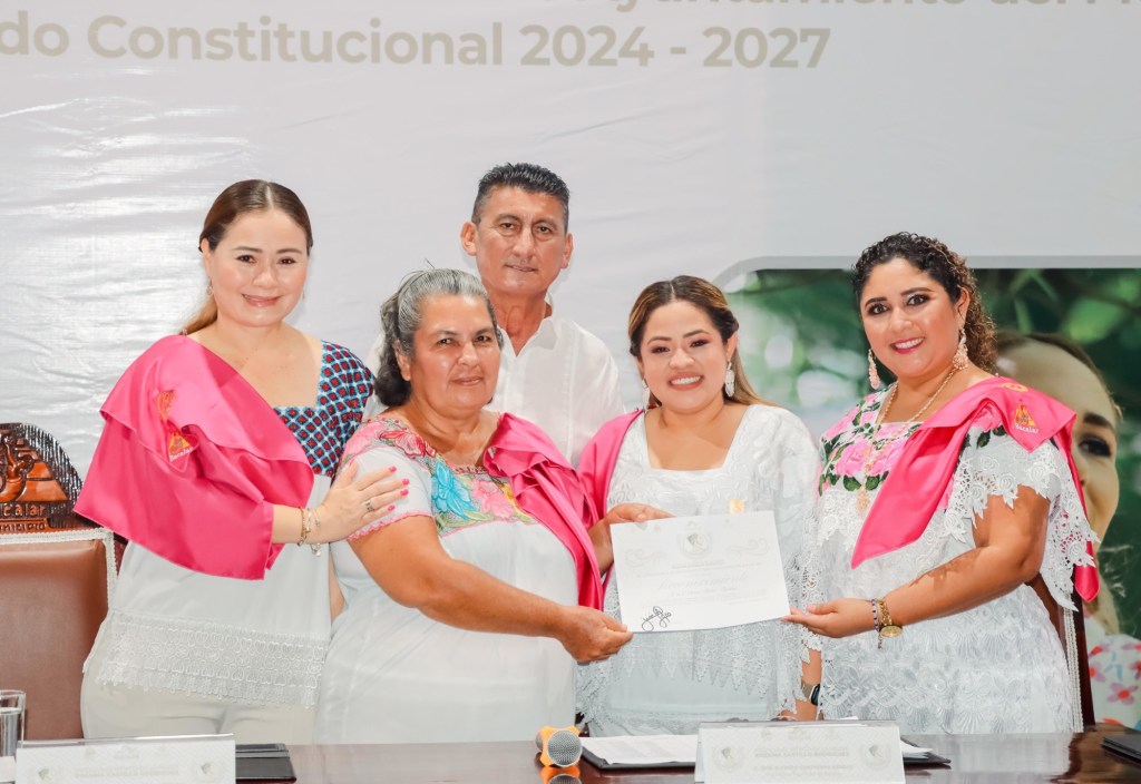 Junto a la síndico municipal, regidoras, regidores, autoridades invitadas representantes de los tres órdenes de Gobierno, así como público en general, el amigo «Chepe» felicitó a la galardonada y a todas las mujeres que participaron, a quienes entregó reconocimientos por su entrega, dedicación y por la valiosa labor y todos sus aportes en beneficio de su comunidad.