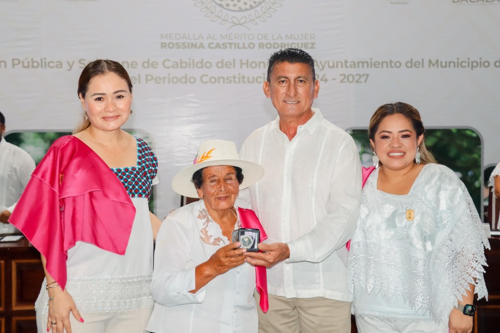 En la Cuarta Sesión Pública y Solemne de Cabildo, a la que asistieron la directora del Sistema DIF Quintana Roo, Abril Sabido Alcérreca, en representación de la gobernadora de Quintana Roo, Mara Lezama Espinosa y la diputada Diana Gutiérrez García, en representación de la XVIII Legislatura del Estado, el presidente municipal de Bacalar, José Alfredo «Chepe» Contreras, dijo que es un día histórico para Bacalar porque por primera vez entregan esta medalla que reconoce el valioso legado y el noble trabajo de las mujeres bacalarenses, bajo el nombre de Rossina Castillo Rodríguez, una mujer que siempre será recordada por su amor a las y los bacalarenses.