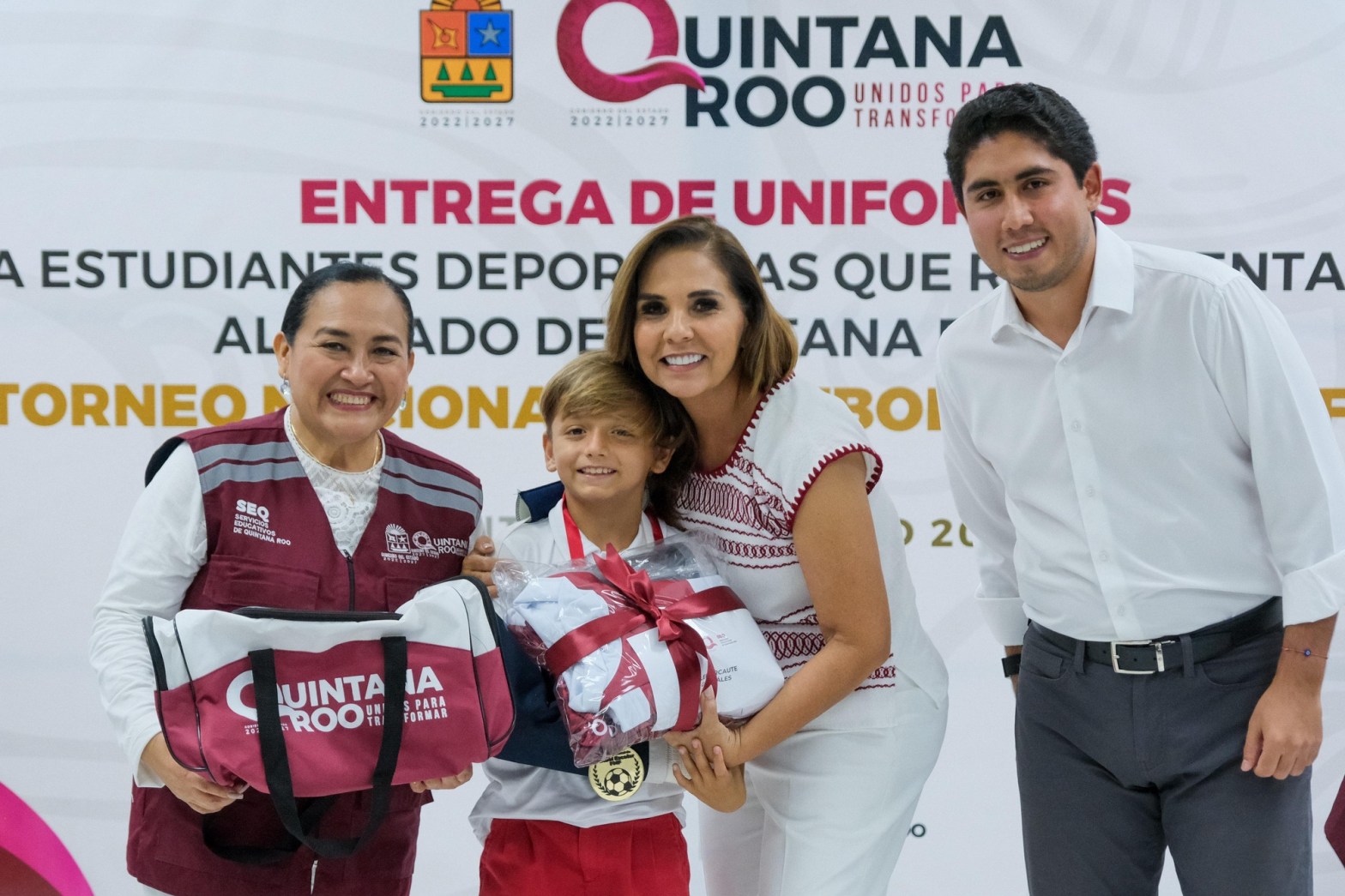 Entrega Mara Lezama uniformes a delegación quintanarroense del Torneo Nacional de Fútbol Escolar FMF