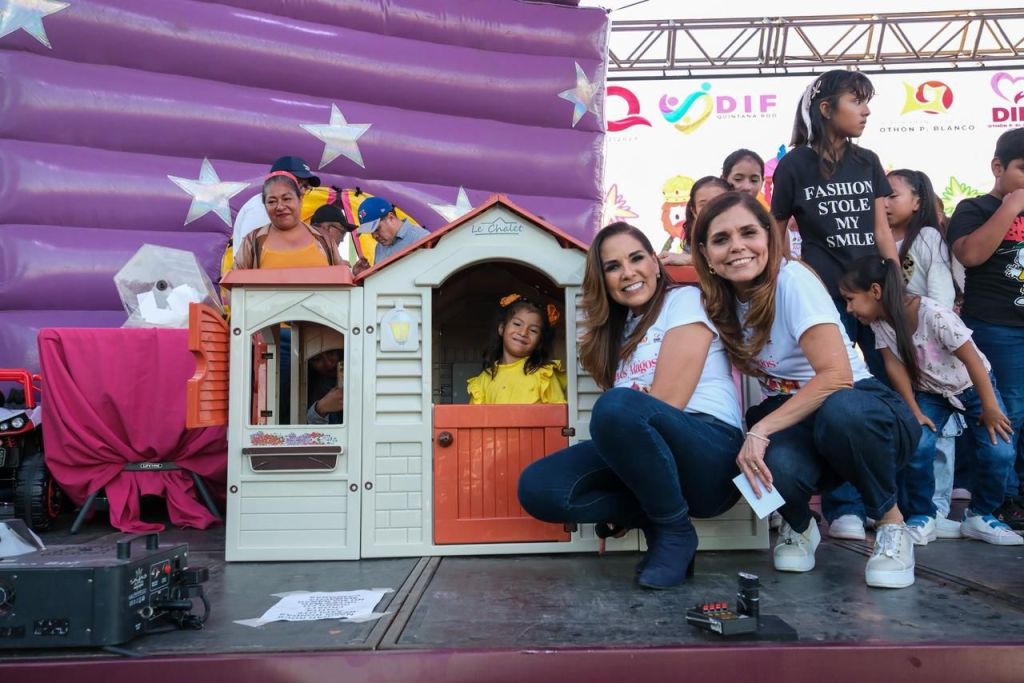 Por su parte, la presidenta honoraria del Sistema DIF Quintana Roo, Verónica Lezama Espinosa, expresó: “Mis niñas y niños, sean felices, diviértanse, jueguen, rían, bailen, canten y disfruten de esta fiesta. Todos los que estamos aquí arriba queremos que sean inmensamente felices, que tengan sueños y que los cumplan”.