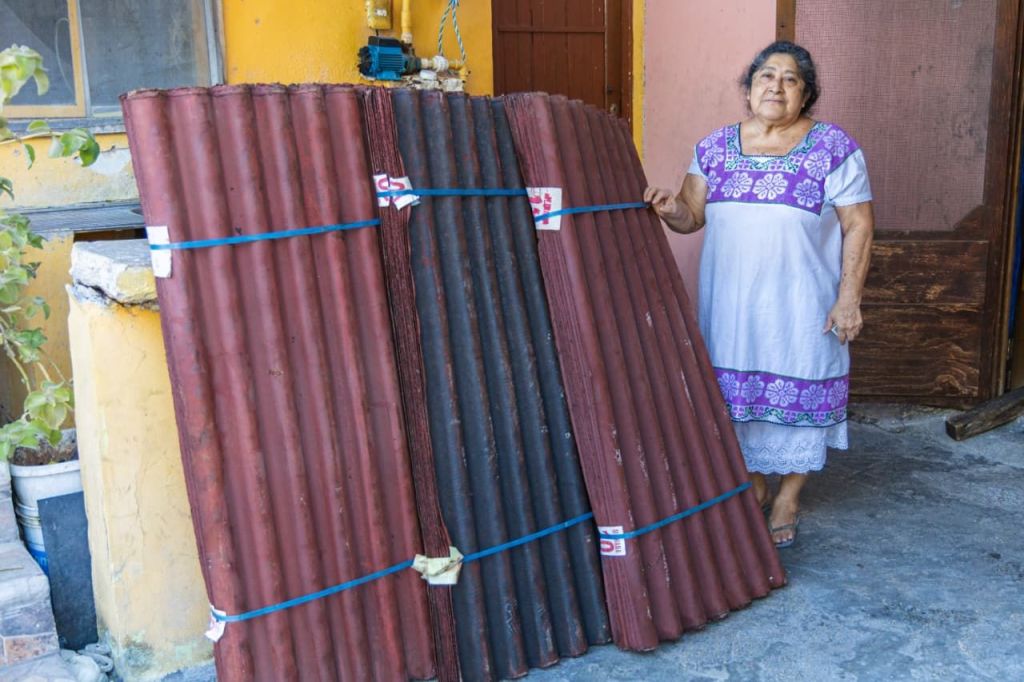 Tras recorrer las calles y escuchar a vecinas y vecinos, se entregaron láminas, tinacos, cobijas, bloques para construcción, descuentos en predial, entre otros apoyos