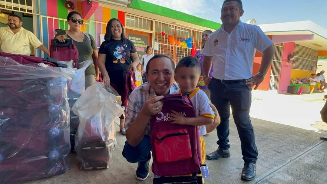 Nivardo Mena entrega útiles escolares en nombre de la gobernadora Mara Lezama